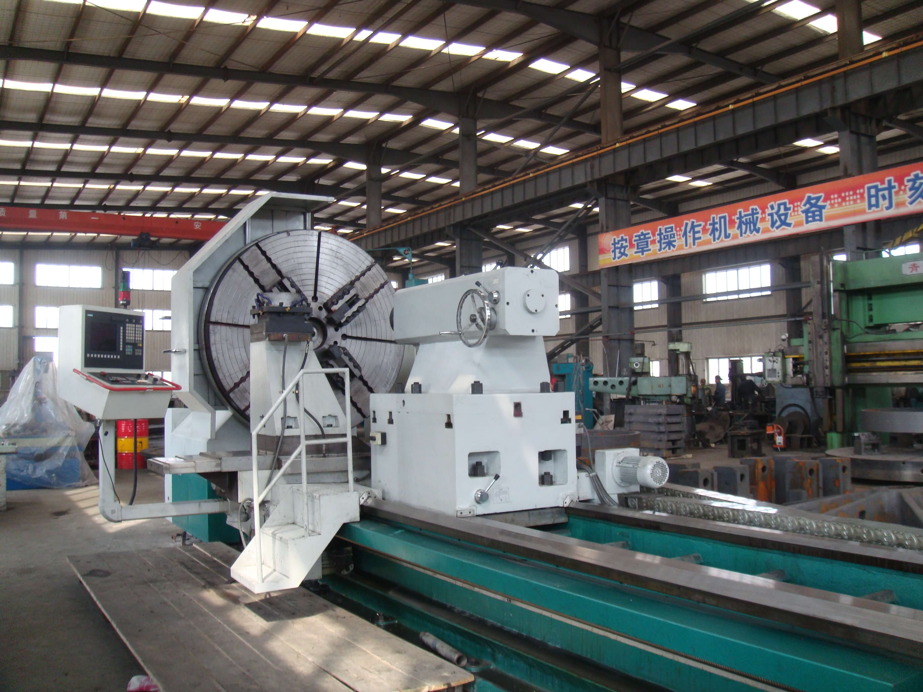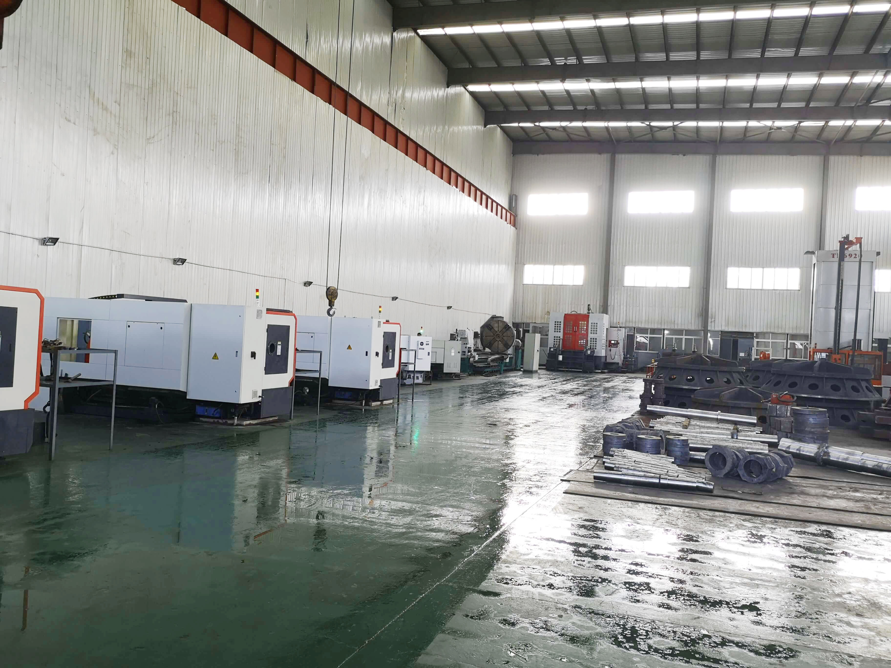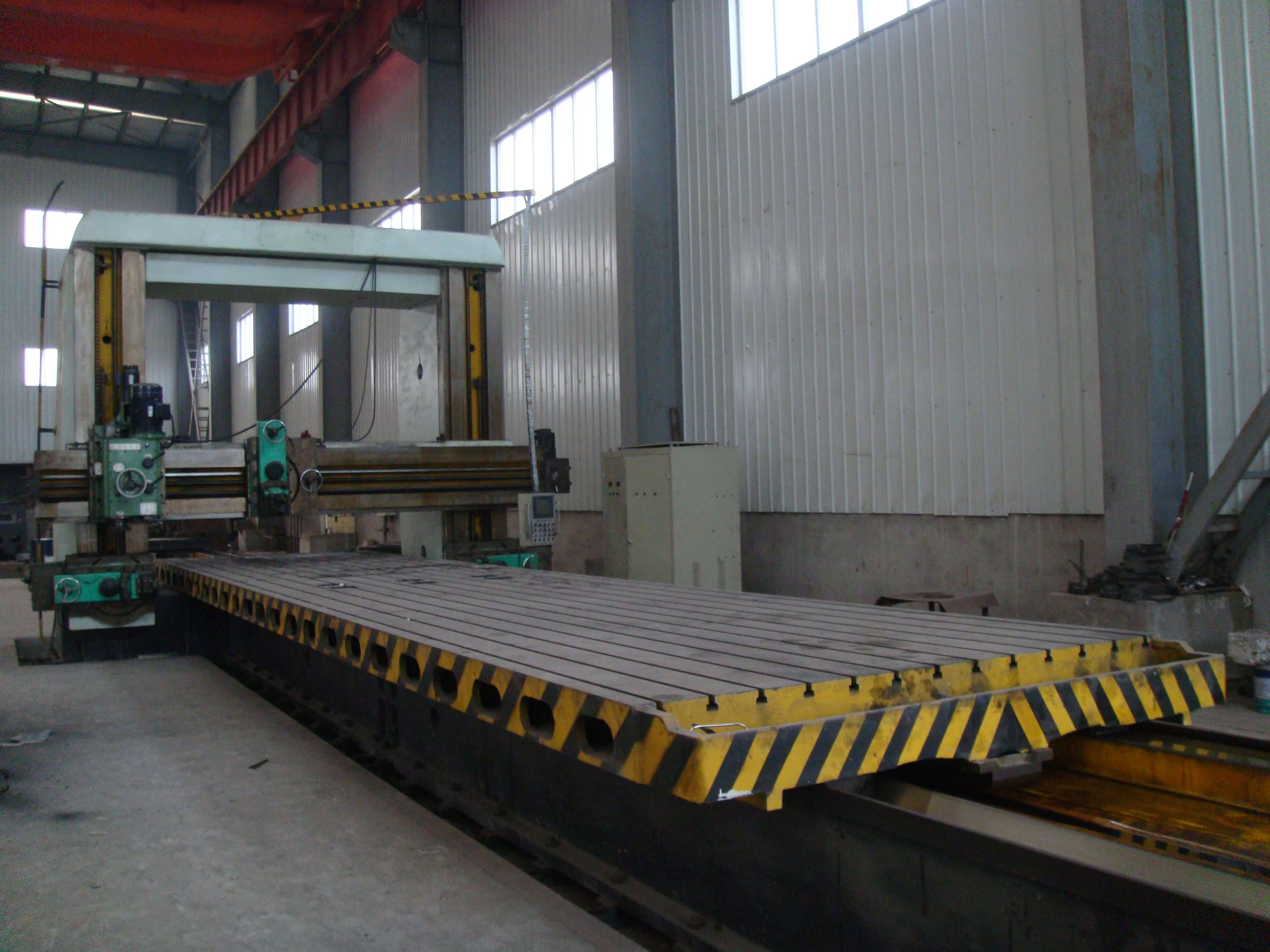 總建筑面積8290平方米,50t吊車2臺,20t吊車1臺,10t吊車5臺。擁有冷加工設(shè)備68臺套,包括TK6920-120-50重型數(shù)控落地銑鏜床,HC1200A臥式數(shù)控加工心,CKD61210/5000mm數(shù)控臥式車銑專機(jī)1臺;12m×2.5m重型刨銑磨床1臺;?200落地鏜床1臺;TPX6113鏜床1臺;T6111鏜床1臺;立式車床4.0米、2.5米、1.25米、0.8米等10臺;CAK系列數(shù)控車床6臺套;CW61100普車3臺;CW6280B普車3臺;滾齒機(jī)、插齒機(jī)、線切割、平面磨床等;