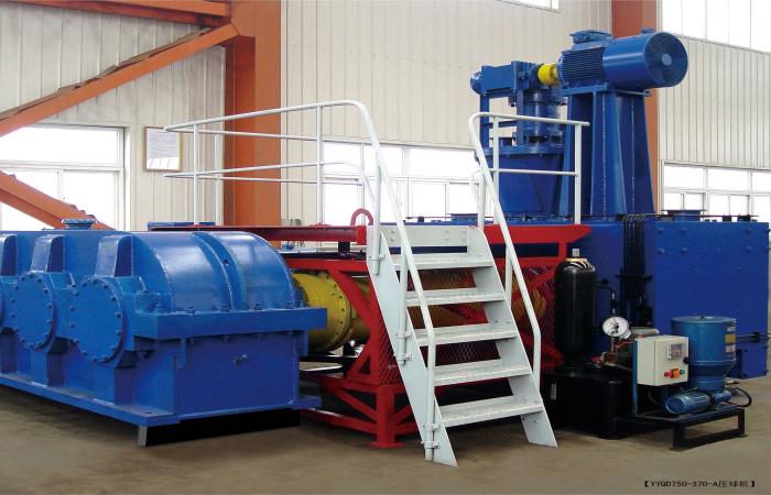壓制難以成型的粉狀物料,其特點是成型壓力大、主機轉(zhuǎn)數(shù)可調(diào)、配有螺旋送料裝置。經(jīng)皮帶,傳至減速器,減速器通過聯(lián)軸器,傳至主動軸再由一對開式齒輪,保證兩滾軸同步(等速反向)物料儲料倉經(jīng)定量設(shè)備均勻地進入成型料斗,使物料的單位成型壓力由小變大,在對輥中心連線處成型壓力達到最大值,物料過該線后,成型壓力迅速變小使物料進入脫球狀態(tài),順利脫球。
